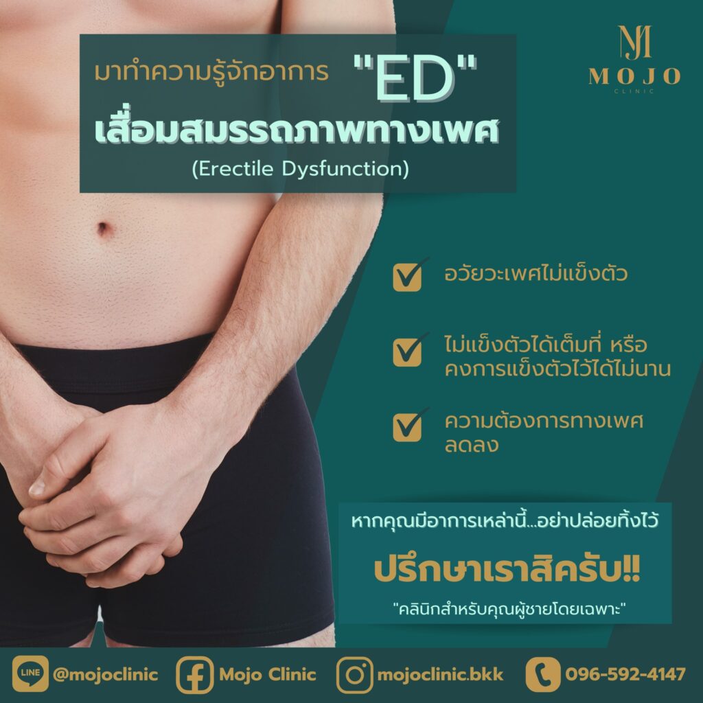 เป็นภาวะที่อวัยวะเพศชายไม่แข็งตัวได้เพียงพอในระหว่างการมีเพศสัมพันธ์ โดยอาการนี้สามารถเกิดได้กับผู้ชายในทุกช่วงวัยไม่จำกัดเฉพาะในผู้สูงอายุเยอะเท่านั้น โดยปัญหาหลักมาจากปัญหาหลักมาจากการมีเลือดไปเลี้ยงที่อวัยวะเพศไม่เพียงพอ อาจเกิดได้จากหลายสาเหตุ เช่น ความผิดปกติที่เส้นเลือดในอวัยวะเพศ โรคประจำตัว เบาหวาน ความดัน โรคหัวใจ ภาวะพร่องฮอร์โมนเพศชาย หรืออาจเป็นภาวะทางจิตใจ เครียด ซึมเศร้า เป็นต้น หากท่านมีอาการเหล่านี้ อาจเป็นปัญหาต่อชีวิตคู่ได้